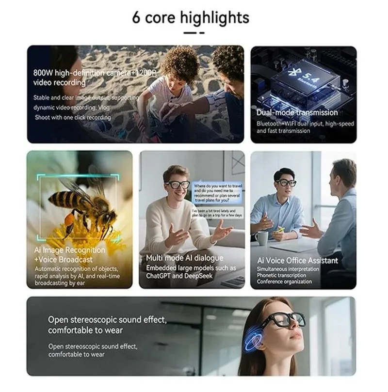 SmartGlasses BV100 Óculos de Sol com Camera, Chamadas e Tradução